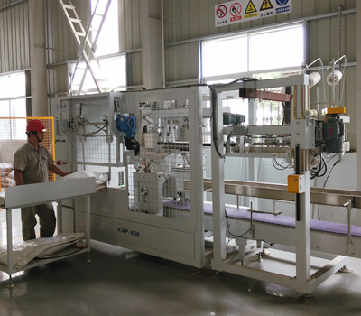 | Aiming at the packing needs of soybean meal material in oil processing industry, by referring to similar applications of the foreign counterparts and taking the top-grade products of global packing industry as benchmark,the semi-automatic packing unit made by Kaiwei Company with its utmost efforts is characterized by small footprint, stable and reliable operation etc. Followed by manual bag handling and opening, the subsequent actions such as bag attaching, bag opening trimming, heavy bag compaction, bag clamping and transfer, edge folding, label conveying, bag stitching etc. are automatically implemented by the semi-automatic packing unit. |