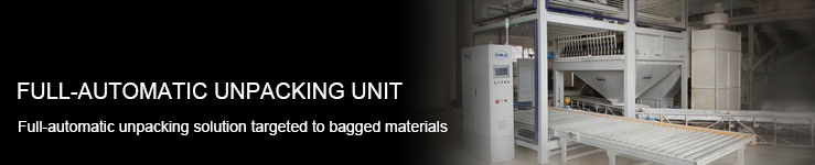 | The full-automatic unpacking unit made by Kaiwei Company adopts international advanced design concept, combines the actual conditions of China, bases on loaded pallet as unit, performs multiple bag grabbing and breaking, material/loaded pallet/waste bag collection etc. It has features of high automatic degree, high operating efficiency, good reliability and less material dissipation etc., so it is applicable to rapid loading and warehousing of massive bagged materials. |